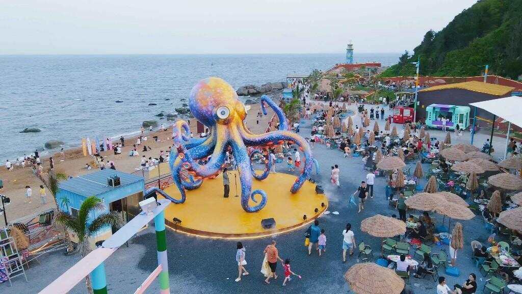 此外,景区着力提升休闲品质,打造了观海美食区、沙滩茶座、临海茶座等多种休闲空间。新增的自助烧烤区和夏日音乐会、激情卡丁车、水上飞人表演、水上舞台演艺及沙滩篝火派对等娱乐项目,进一步丰富了游玩内容。在环境与安全方面,景区全面完成了绿化提升、遮阳设施、亮化工程,并实现了安全监控全覆盖与无线网络全覆盖,优化了园区动线与公共休息区。